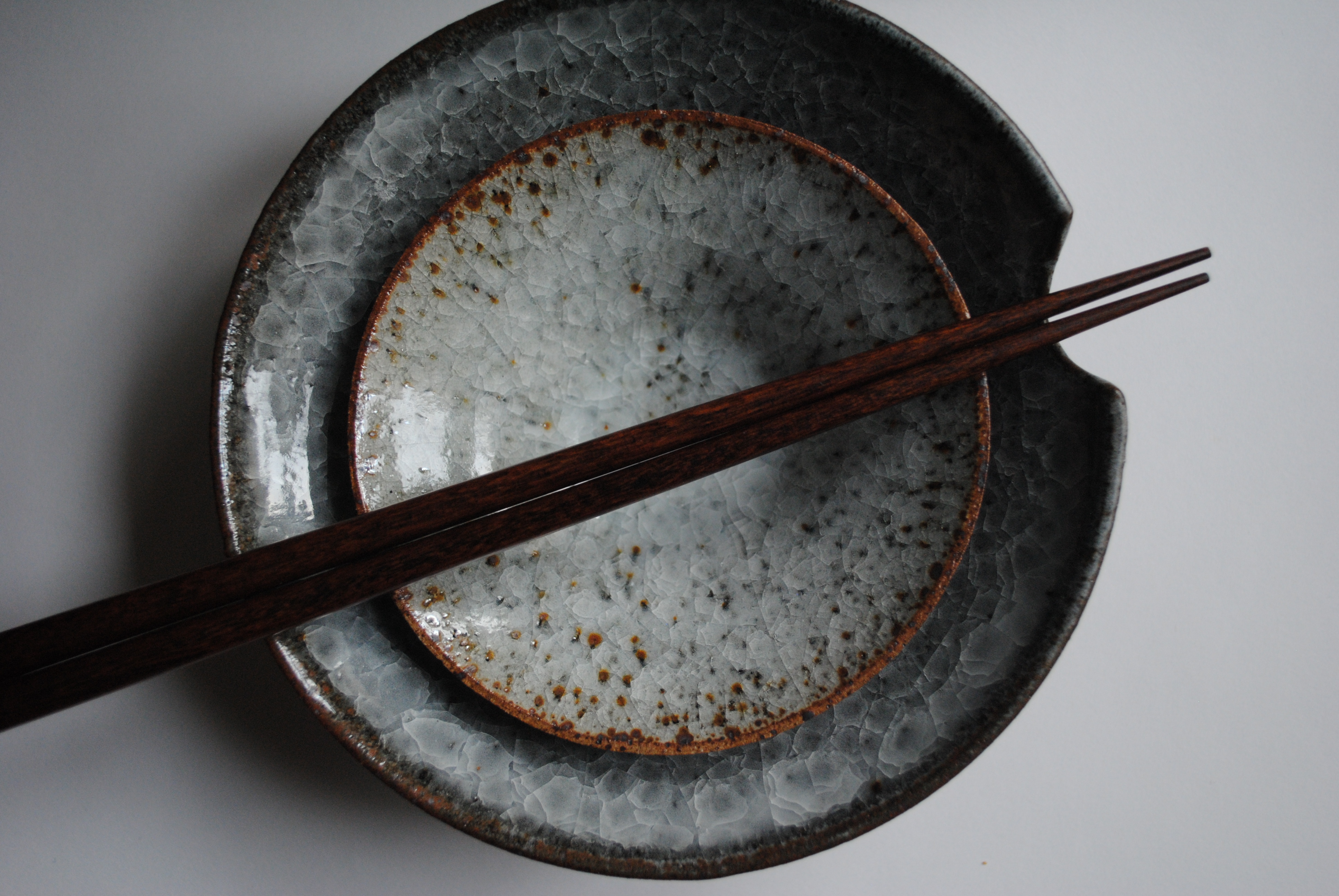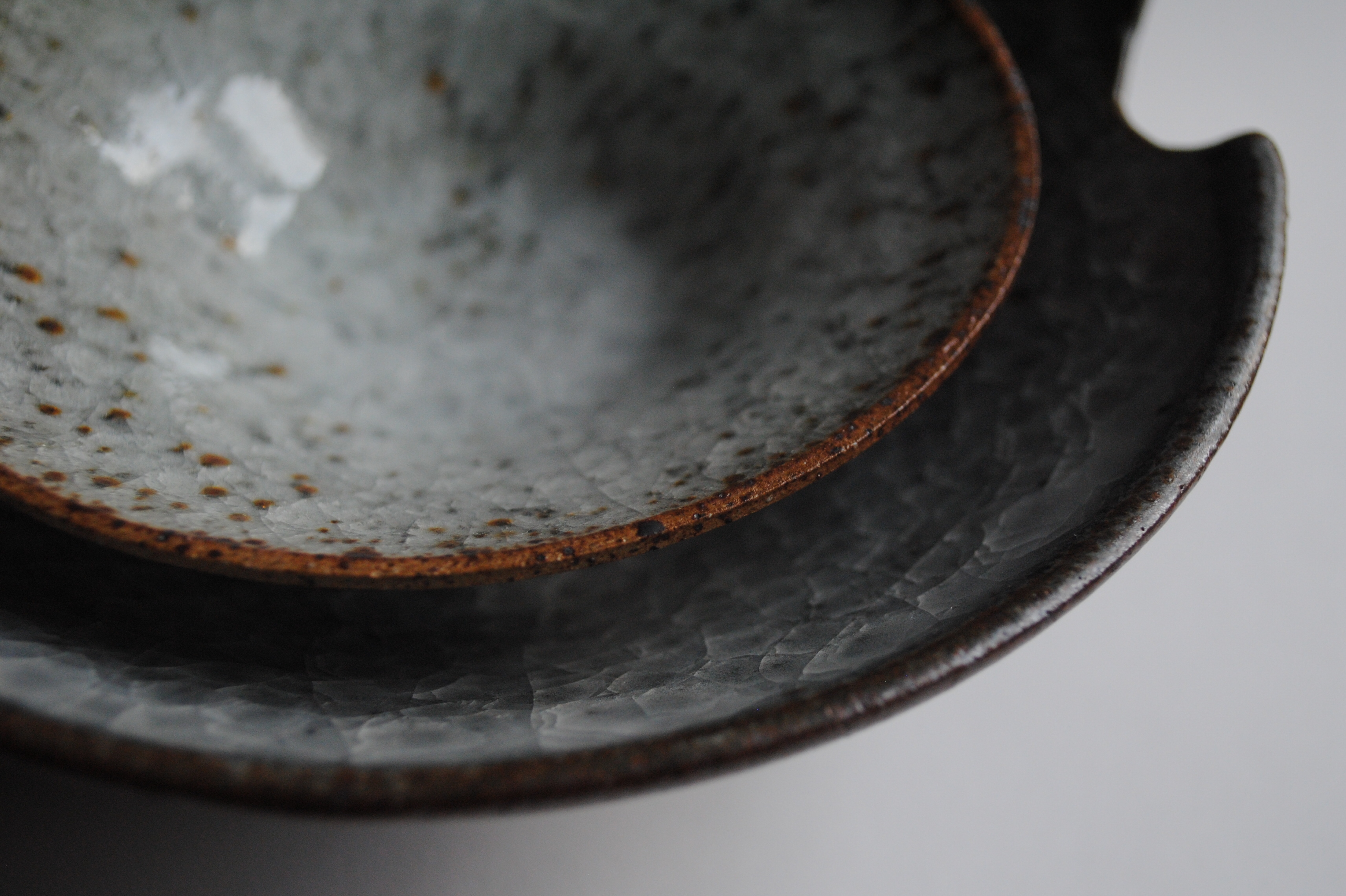 (underneath): Reduction fired ramen bowl with chopstick detail, snowflake glaze, 2020