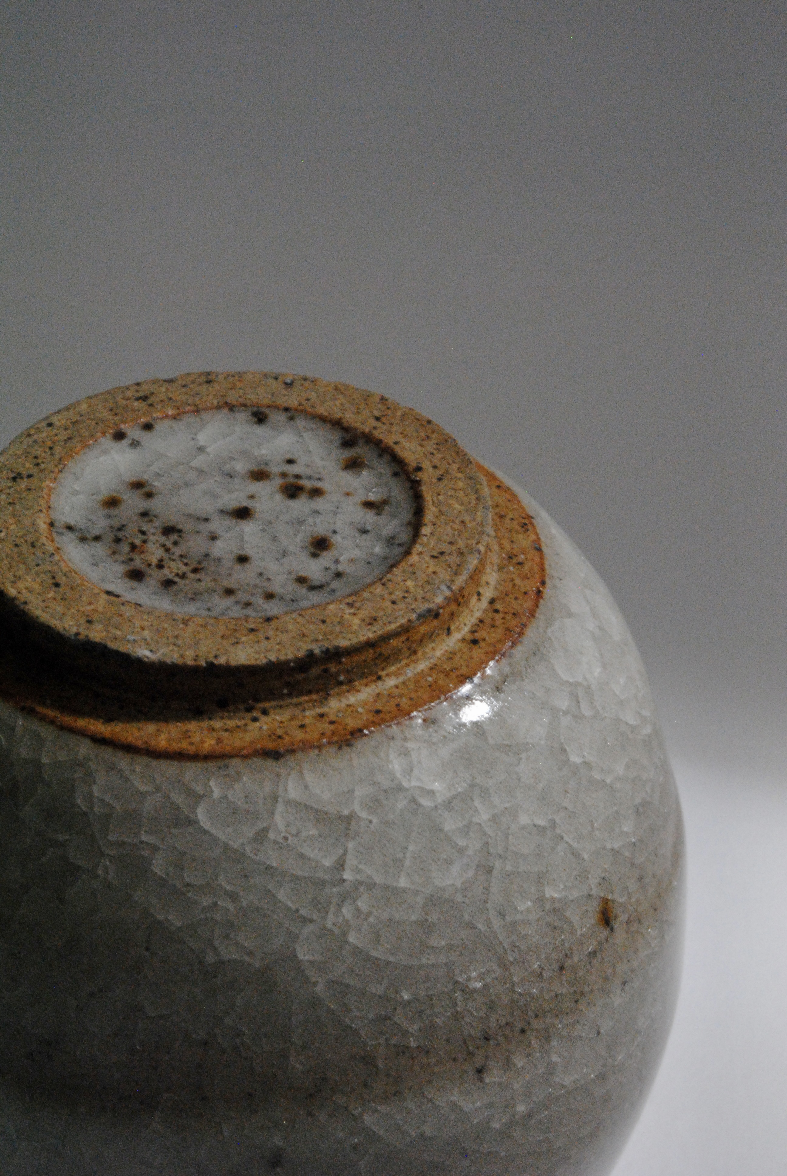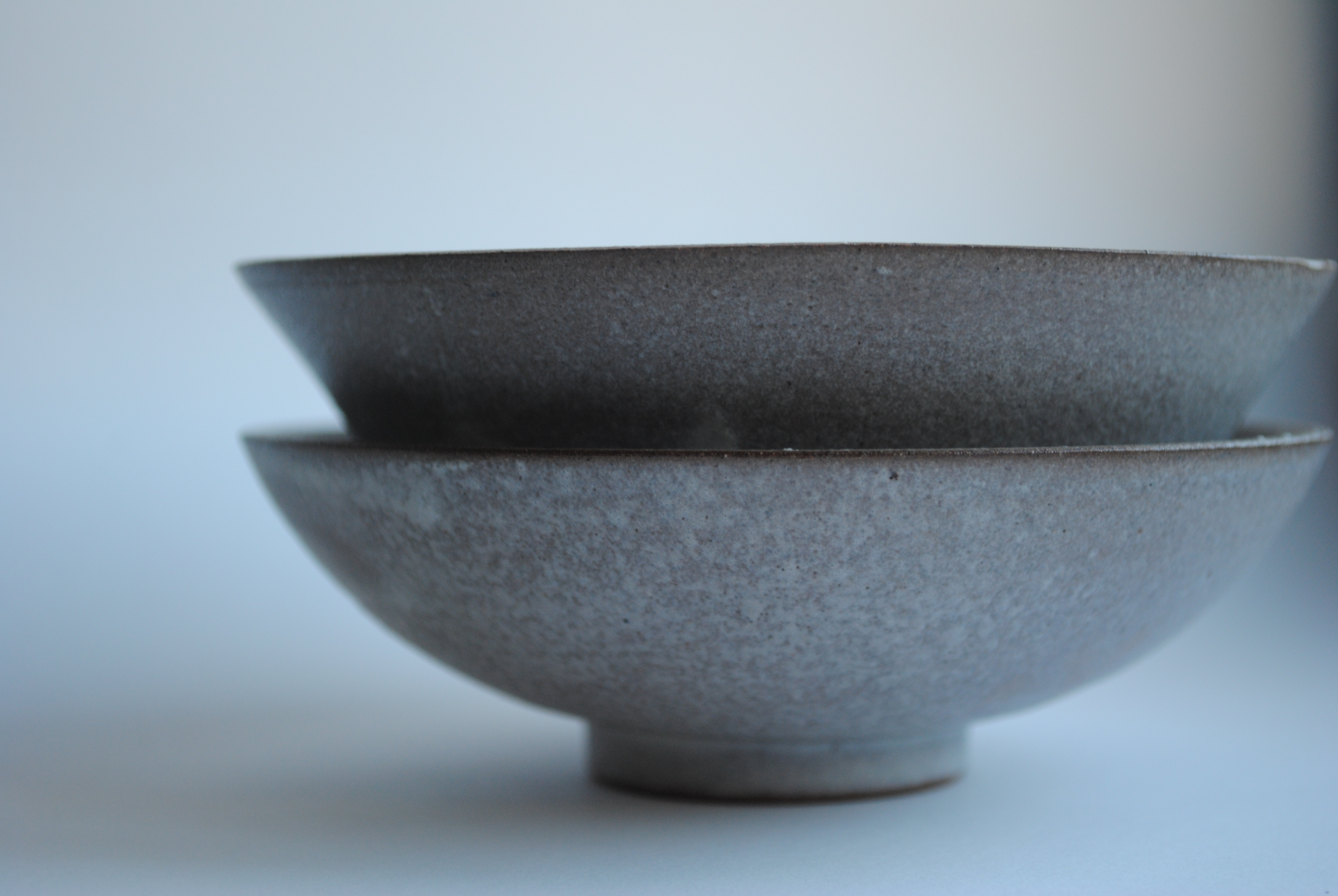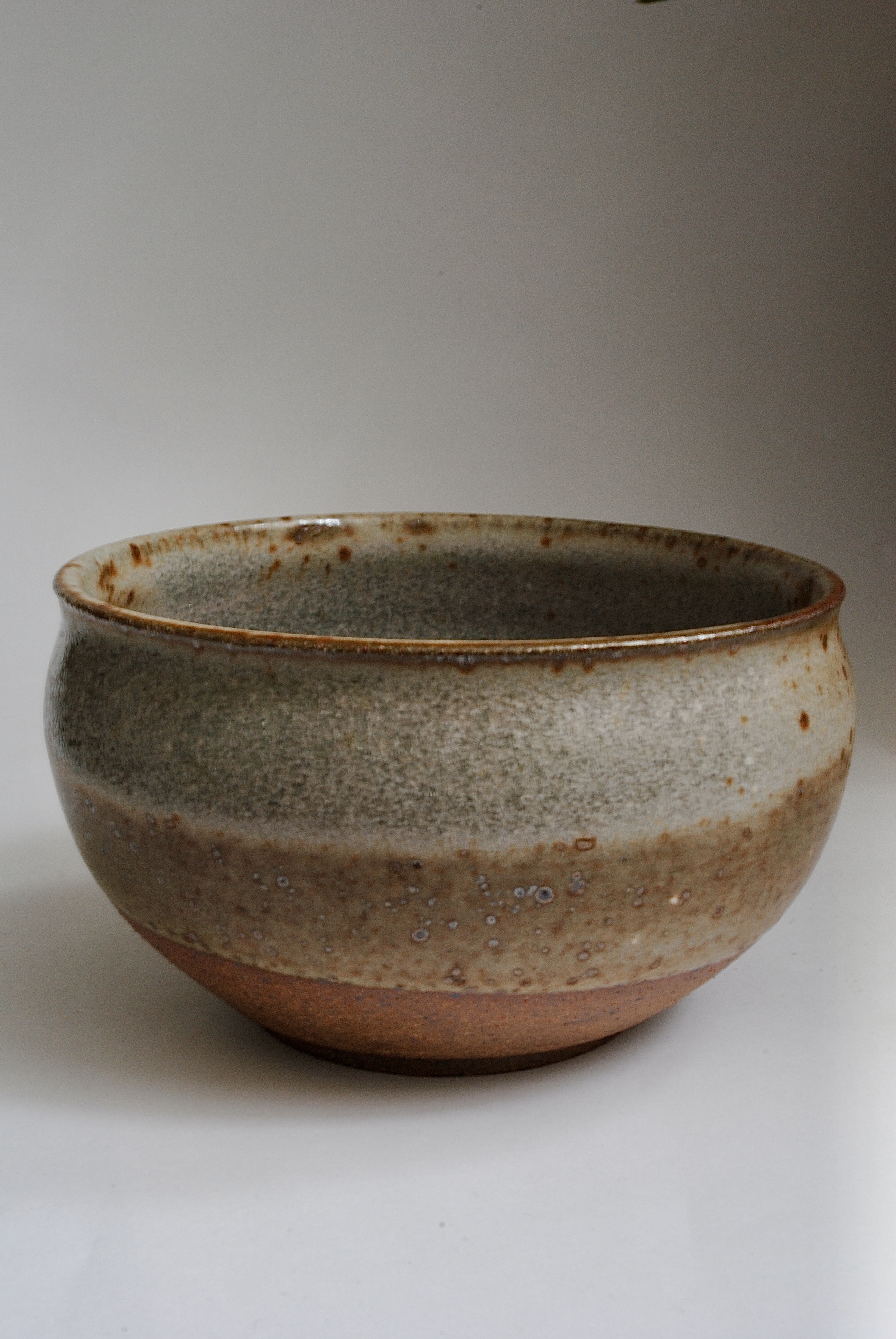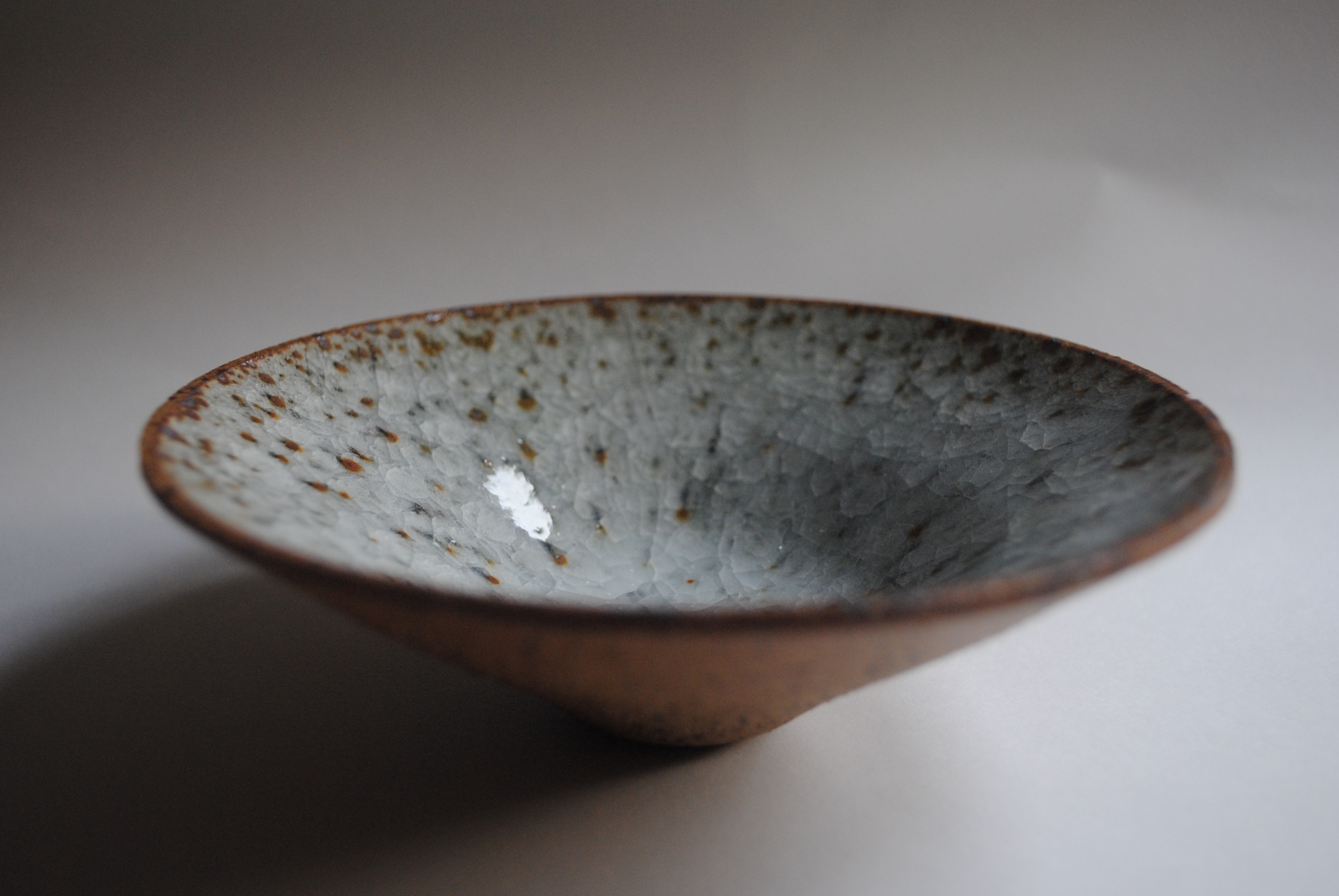 Reduction fired wide conical bowl, snowflake glaze, 2020