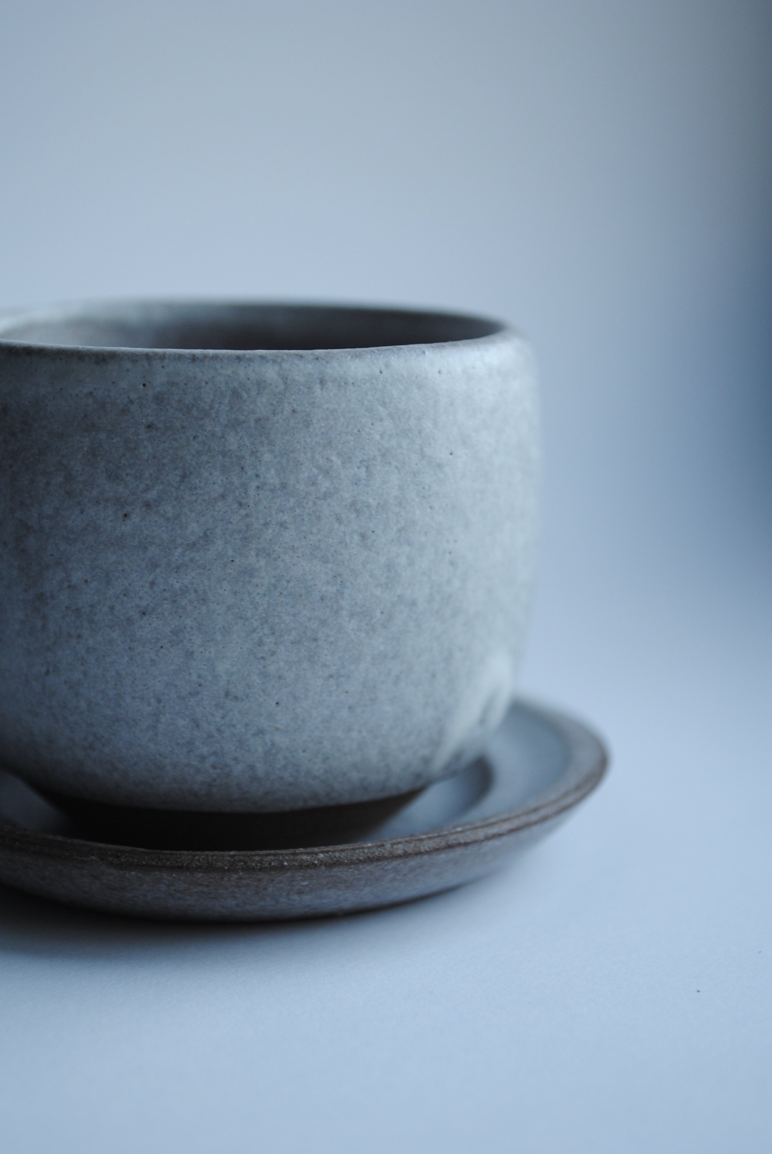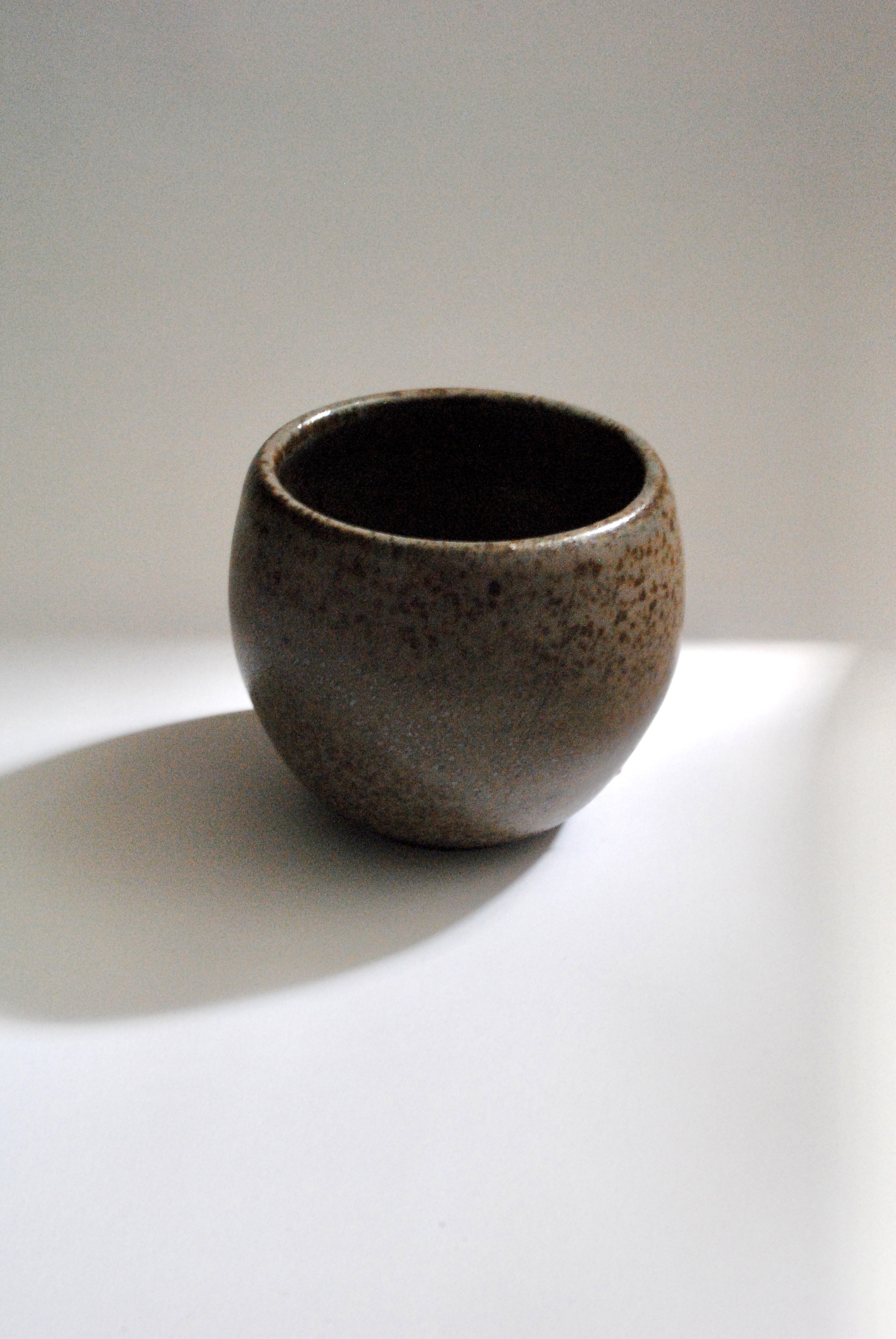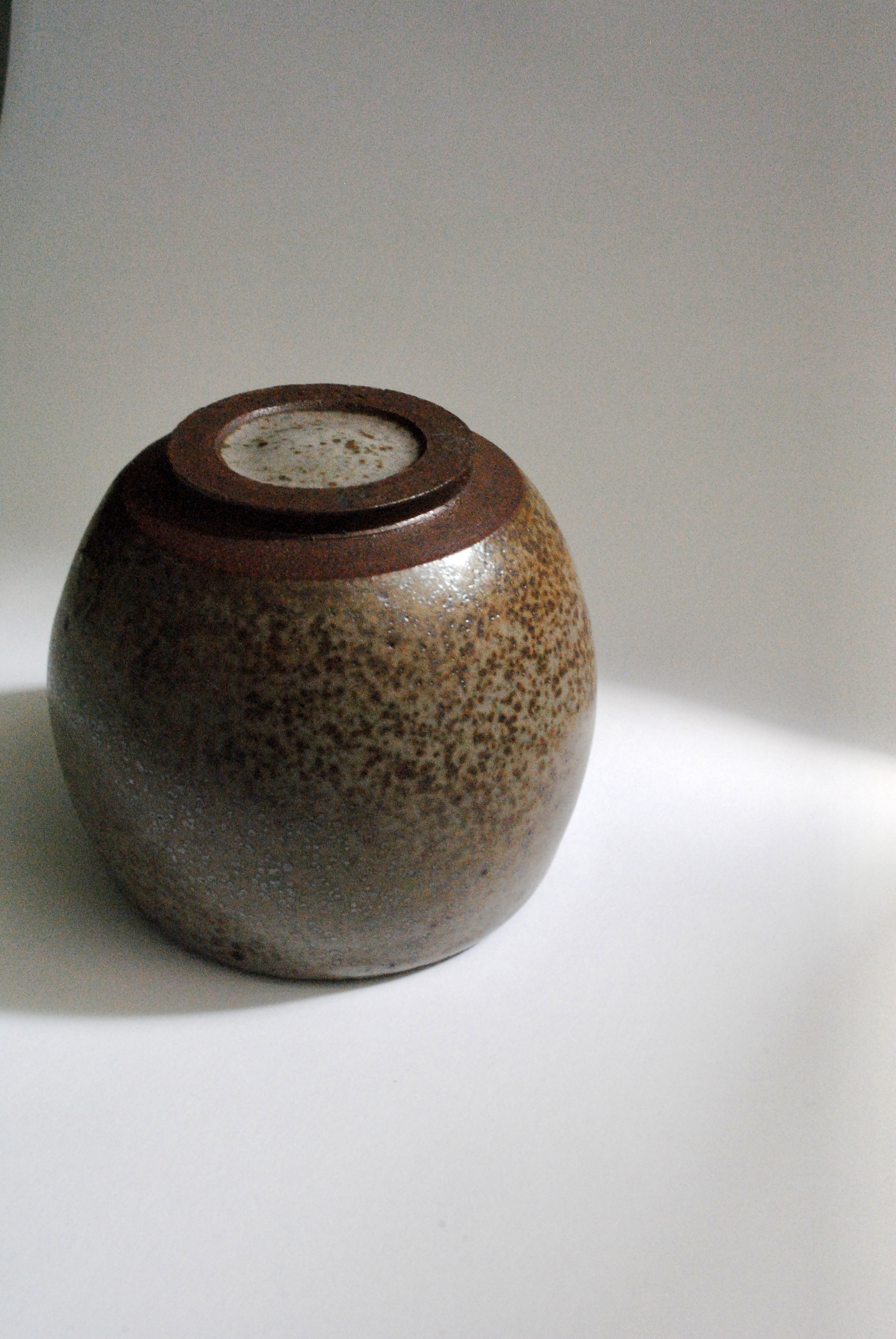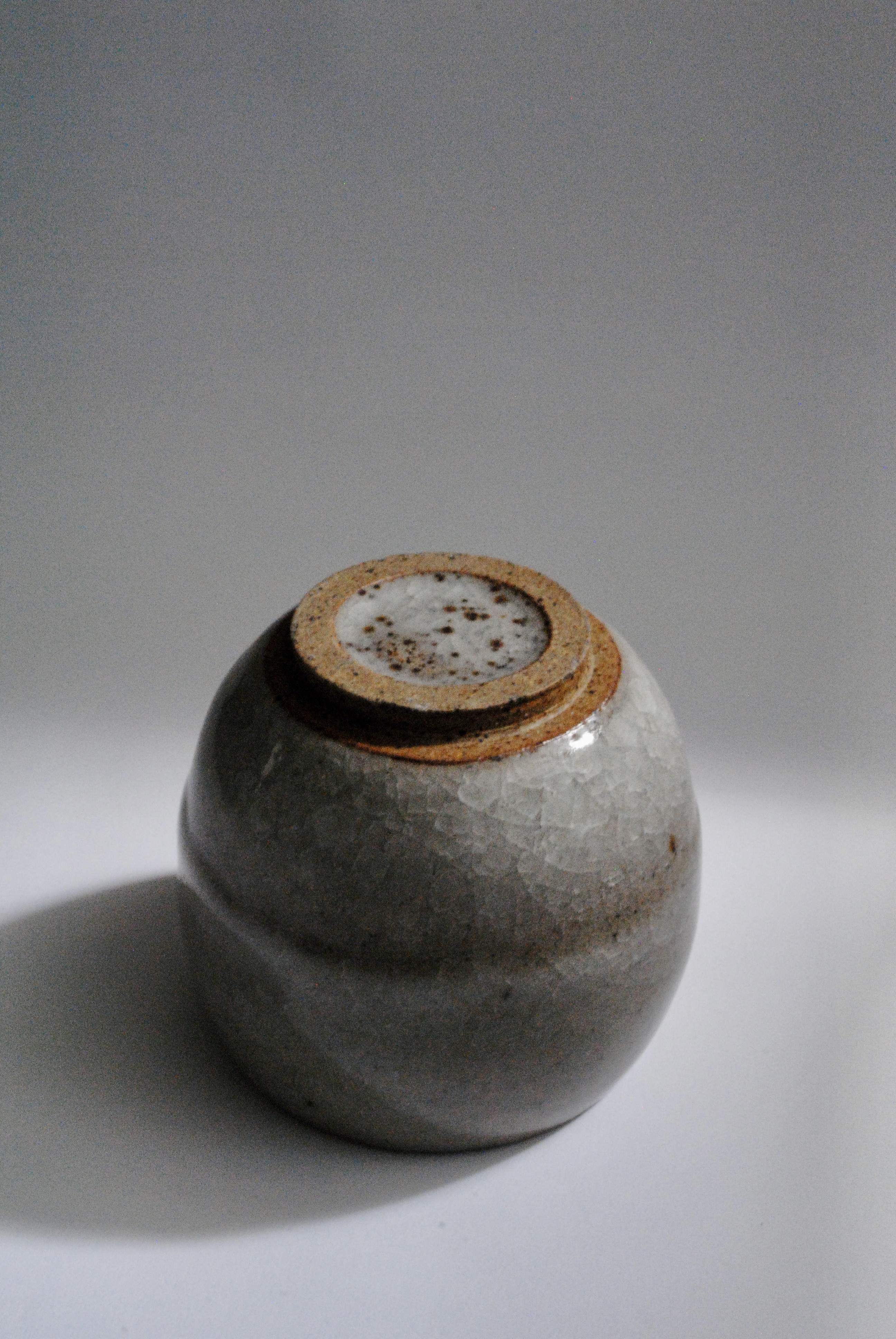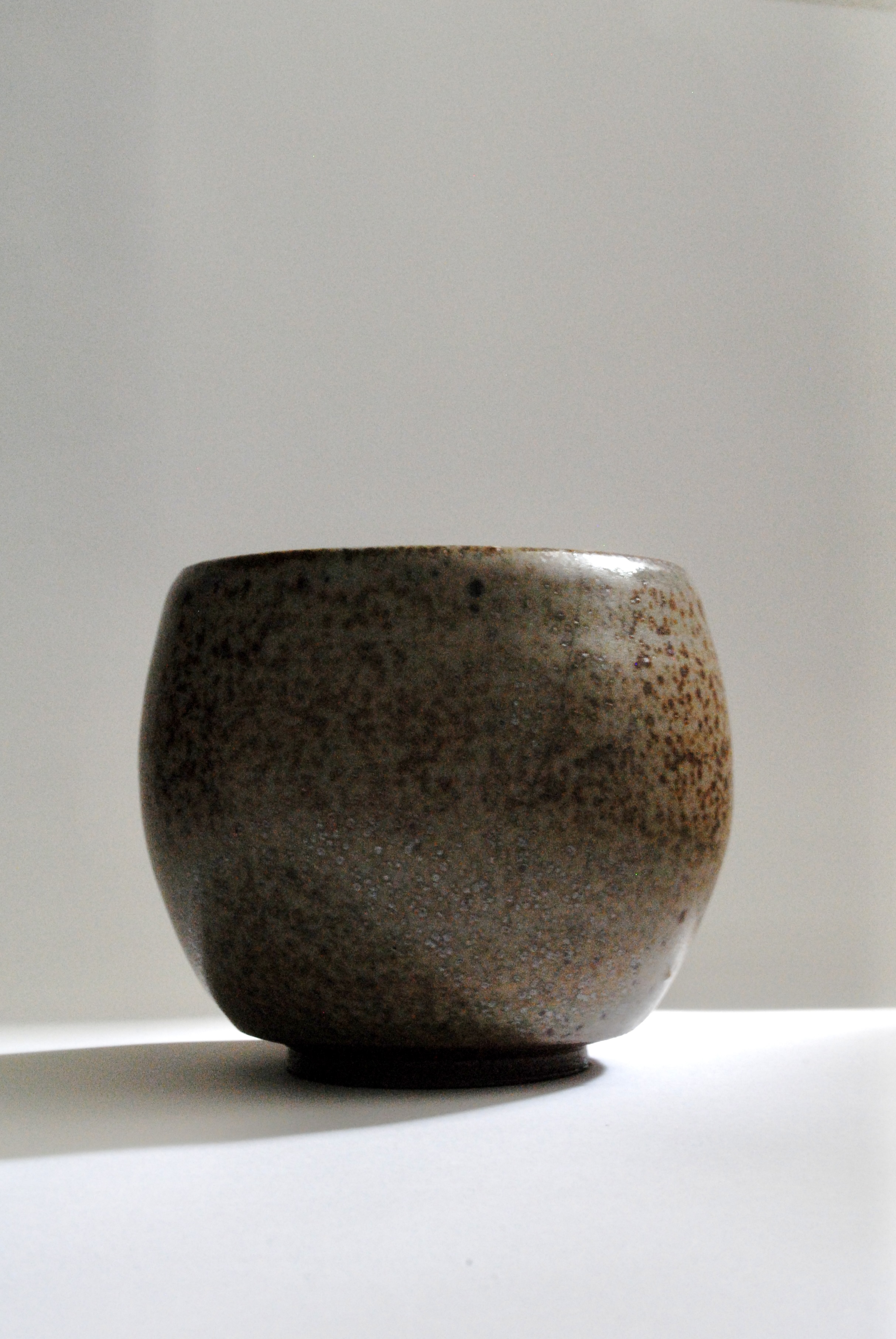 Reduction fired wide conical bowl, snowflake glaze, 2020